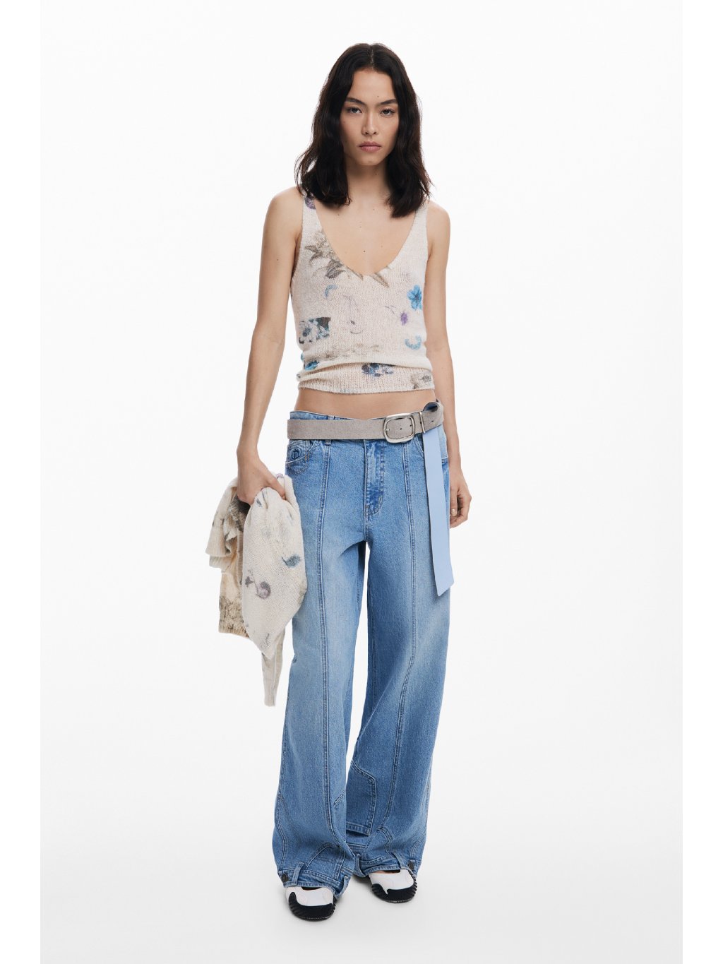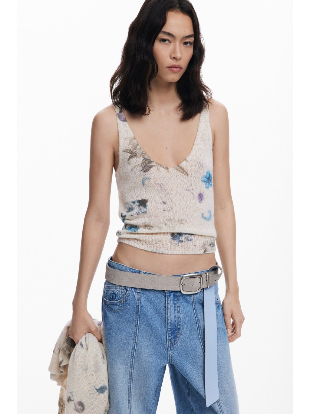 Něžný dámský svetr Estocolmo od značky Desigual společně s tílkem vytváří dokonalý pár. Můžete jej nosit jako lehký svetřík bod kabát či jako přehoz přes šaty. Součástí svetru je tílko stejného vzoru a materiálu.