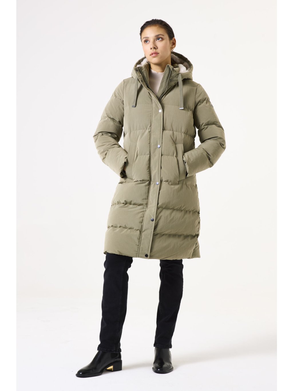 Prošívaný dámský zimní kabát od značky Garcia Jeans. Výplň z technického peří a vysoký límec Vás příjemně zahřejí. Jednoduché provedení dovoluje kabát kombinovat se všemi outfity.