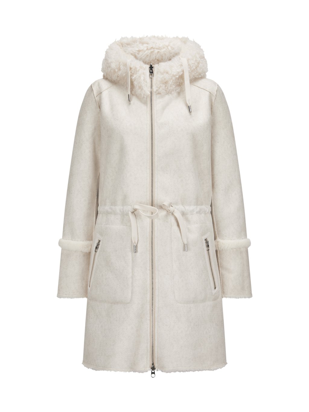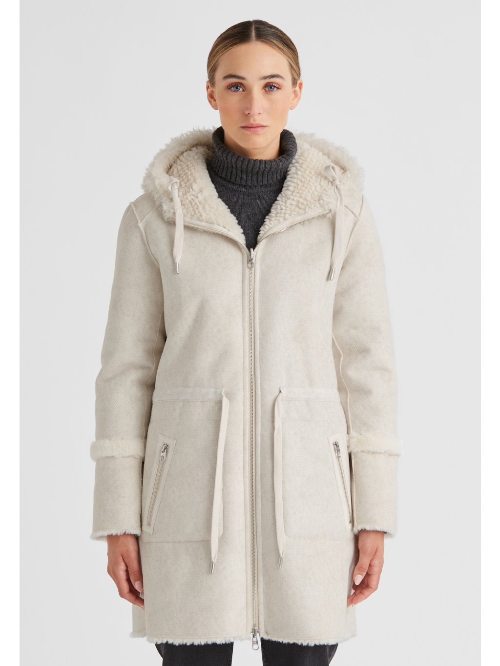 Luxusní dámský oboustranný kabát od značky Milestone. Je ideální volbou pro ty, kteří chtějí mít ve svém šatníku kousek, který mohou nosit na různé příležitosti. Z jedné strany je vyroben z útulné umělé jehněčí kůže s pleteným vzorem rybí kosti, zatímco druhá strana překvapí potištěným semišem. Měkký materiál z umělé kožešiny lichotí pokožce a nabízí útulné teplo. Zamilujete si ho pro jeho oboustrannost , která promění jeden kabát ve dva zcela odlišné – jeden útulný a luxusní, druhý sametový a elegantní.