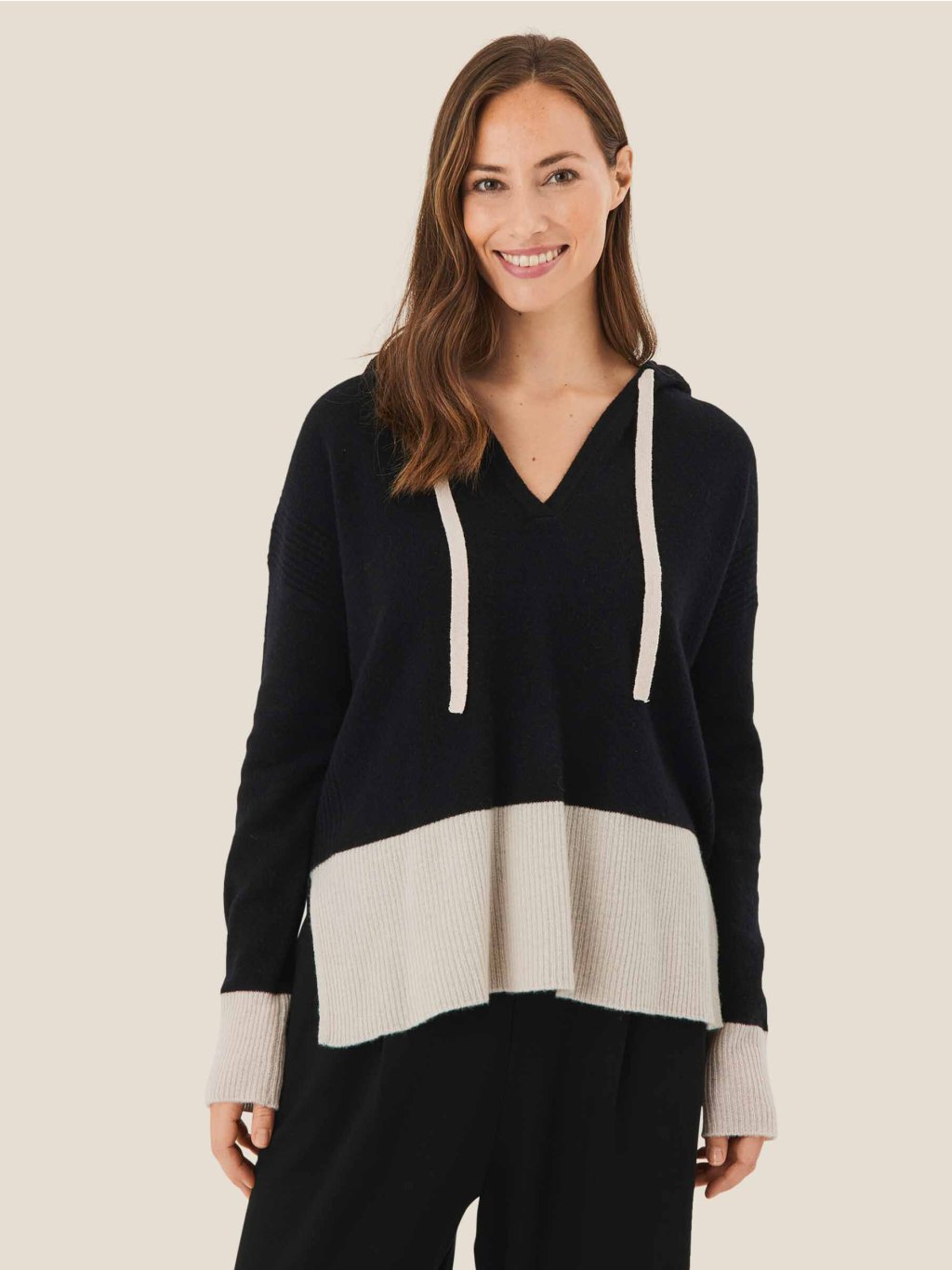 - béžový spodní lem a lemy rukávů